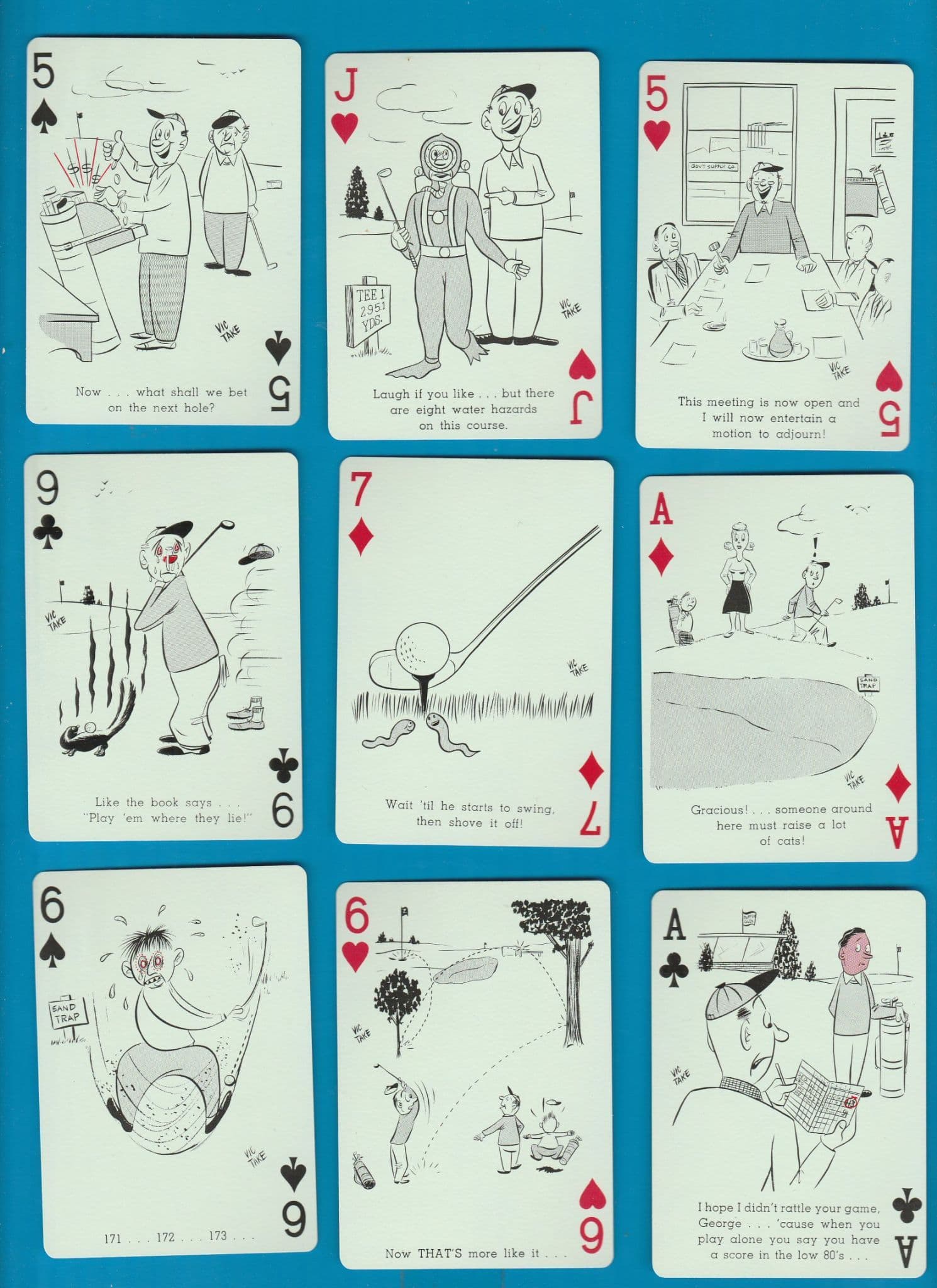 Collectible Vintage Non-standard playing cards. 1960`s Tee-up 52 golf cartoons + special joker + box all mint